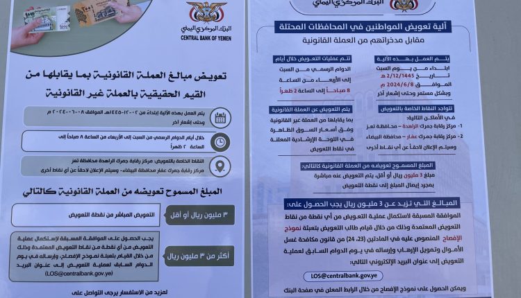 يشار إلى أنه يتم استبدال الطبعة القانونية القديمة من العملة اليمنية بـثلاثة أضعاف سعرها من العملة غير القانونية المتداولة في المناطق المحتلّة، في حين يرى خبراء اقتصاديون أن هذه الخطوة قد تشل التصعيد الاقتصادي الذي يشنه العدوان الأمريكي السعوديّ الإماراتي ومرتزِقته.
