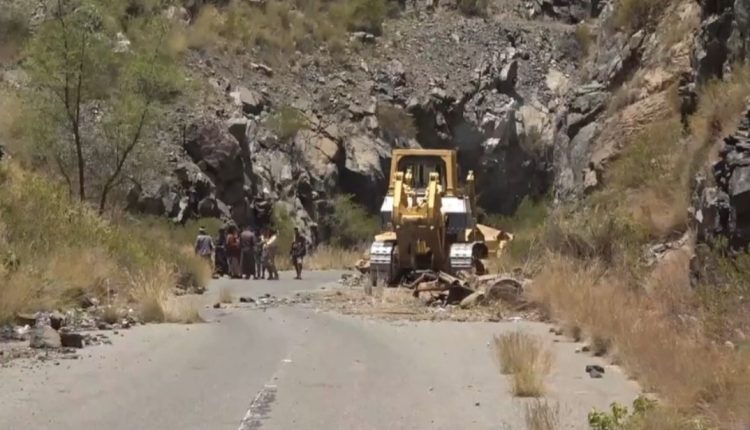تفقد محافظ البيضاء عبدالله إدريس اليوم سير العمل في إزالة مخلفات الحرب في عقبة ثرة لدعم مبادرة فتح طريق البيضاء – أبين من طرف واحد .