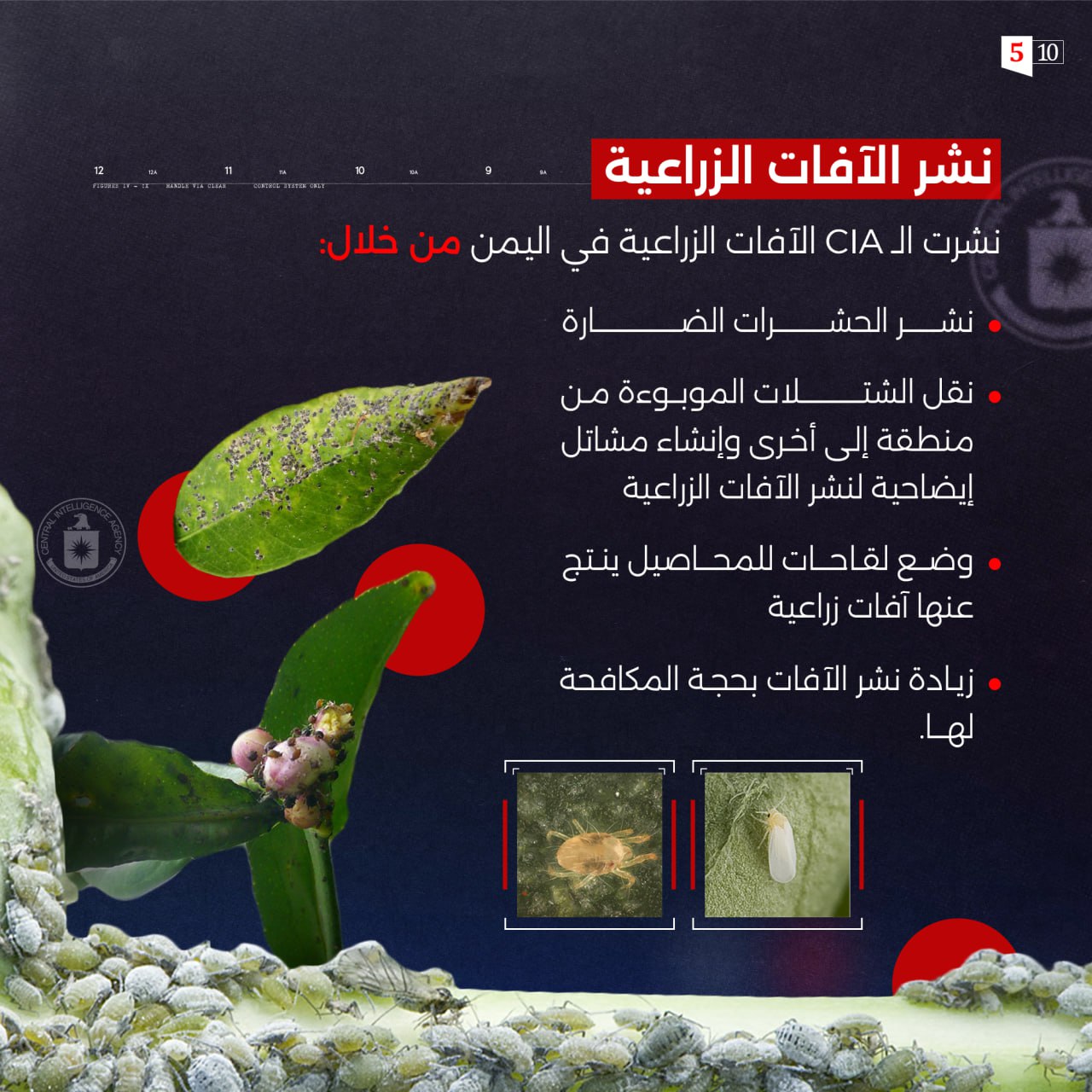 وتضمنت الاعترافات تفاصيل مروعة حول أساليب مُستخدمة لإلحاق الضرر بالمحاصيل اليمنية، بدءًا من نشر بذور مصابة بالآفات، إلى تلويث التربة الخصبة، وصولًا إلى احتواء الكوادر البحثية.