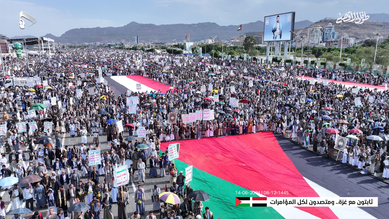 مهللين ومكبرين هاتفين بالبراء والعداء لأعداء الله.. حشود مليونية غاضبة في مسيرة “ثابتون مع غزة.. ومتصدون لكل المؤامرات” بميدان السبعين في العاصمة صنعاء