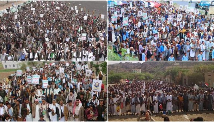 وأشارت البيانات، إلى “إنه وانطلاقا من الإيمان بالله واستشعارا للمسؤولية الدينية والأخلاقية والإنسانية خرج الشعب اليمني اليوم نصرة ومساندة ووفاء للشعب الفلسطيني برغبة، واهتمام، وعزم وثبات على موقفه دون كلل ولا ملل، واثقين بنصر الله ووعده”.
