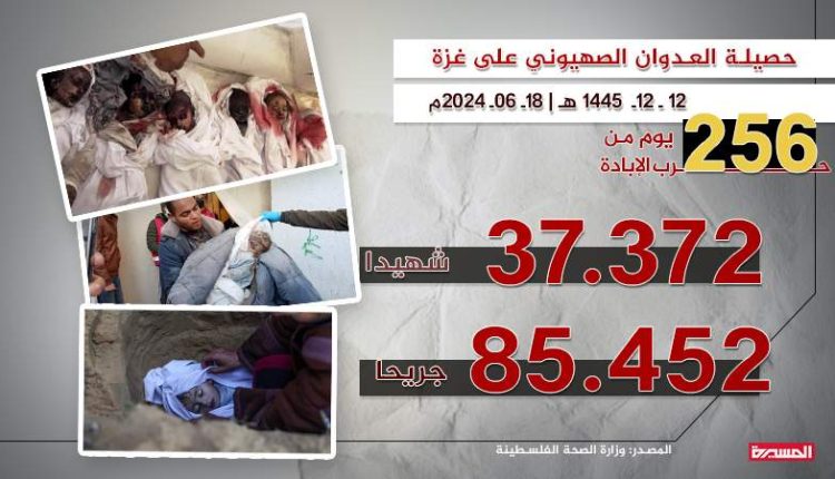 وفي التقرير الاحصائي اليومي لعدد الشهداء والجرحى جراء العدوان الصهيوني المستمر لليوم ال 255 على قطاع غزة، أفادت الوزارة بارتفاع حصيلة العدوان إلى 37372 شهيد و85452 إصابة منذ السابع من أكتوبر الماضي.