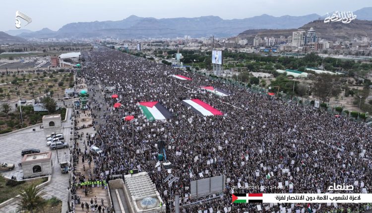 صور جوية| طوفان بشري وحشود مليونية تملأ ميدان السبعين بالعاصمة صنعاء في مسيرة “لا عزة لشعوب الأمة دون الانتصار لغزة”