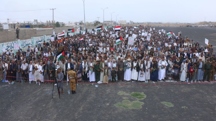 أبناء تعز يحتشدون في 8 ساحات تأكيداً على استمرار التضامن والدعم للشعب الفلسطيني ومقاومته الباسلة