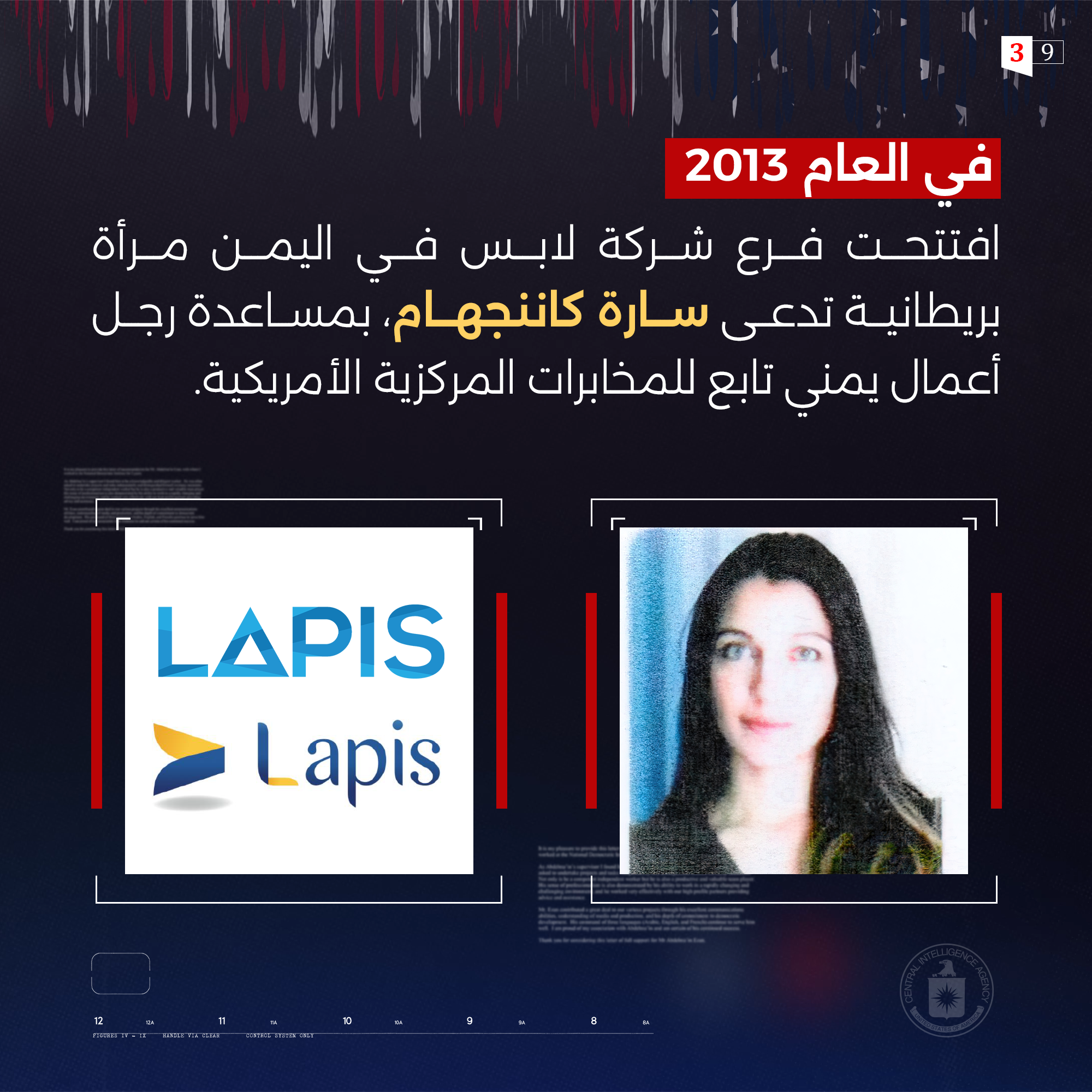 افتتحت فرع الشركة في اليمن سيدة بريطانية تدعى سارة كانينجهام على أساس أنها المؤسسة لشركة “لابس”، حيث أنشأت في اليمن في سنة 2013م، بينما عمل الجاسوس عبد المعين عزان فيها كمدير لمكتب الشركة في اليمن من عام 2015، تحديدا من شهر 3.