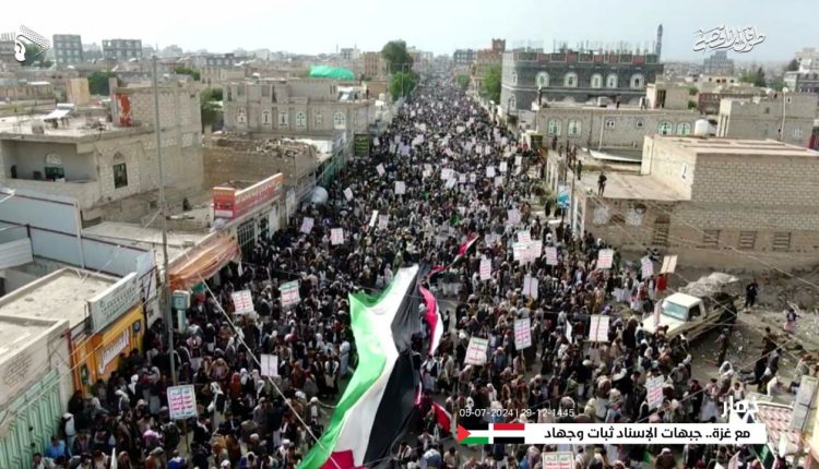 واستنكر بيان صادر عن المسيرات، جرائم الإبادة الجماعية التي يمارسها الكيان الصهيوني بحق الشعب الفلسطيني بمساندة ودعم أمريكي وغربي، واستخدام الحصار والتجويع كسلاح لقتل الشعب الفلسطيني.. منددا بالتجاهل التام لتلك الجرائم من قبل المنظمات والأنظمة العربية الرسمية التي تصنف المجاهدين في فلسطين.