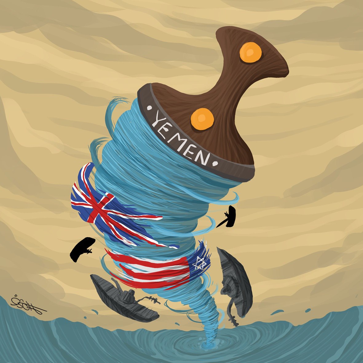 كاريكاتير شاهد| إعصار يمني يضرب البحر العربي والبحر الأحمر والبحر الأبيض المتوسط والمحيط الهندي يمانيون/ كاريكاتير إعصار يمني في البحر العربي – البحر الأحمر – البحر الأبيض المتوسط – المحيط الهندي #العدوان الصهيوني على غزة#العمليات العسكرية اليمنيةً#اليمن Share
