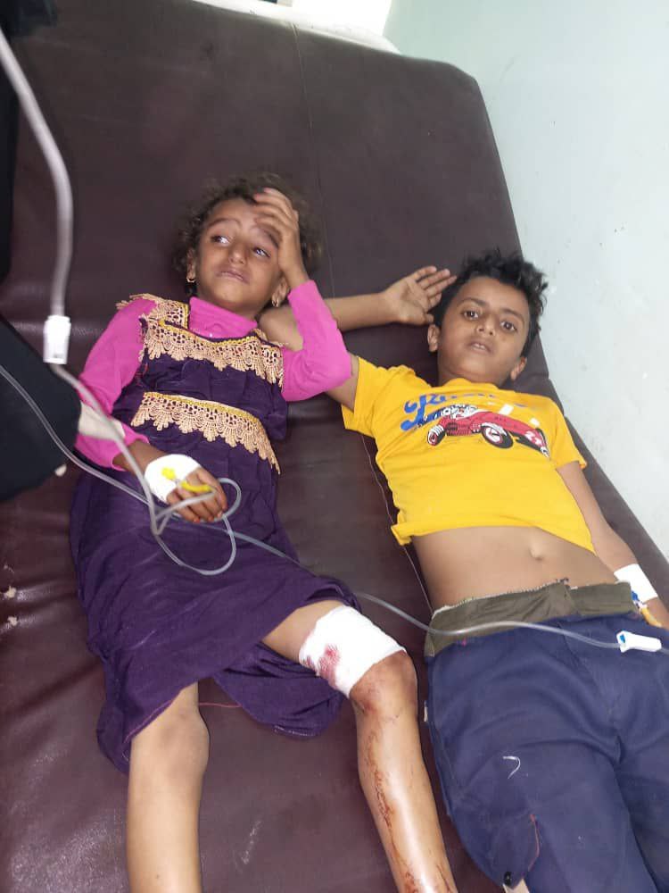 وذكر المصدر أن المصابين هم عبدالله علي محمد سعد (٧٠عاما)، والطفلة أريام صادق محمد علي (7 أعوام)، ورامز عبدالرحمن عبدالله صالح (12 عاما)، وأحمد عبدالقوي محمد الحبوري (12 عاما) واحسان رفيق محمد علي (7 أعوام)، وبيان صادق محمد علي (4 أعوام).