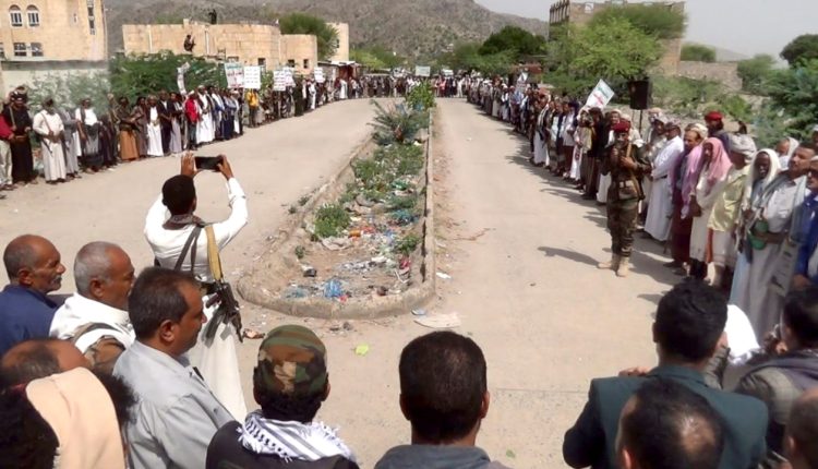 إب.. وقفة شعبية في فرع العدين تأييداً للإنجاز الأمني بضبط شبكة التجسس الأمريكية