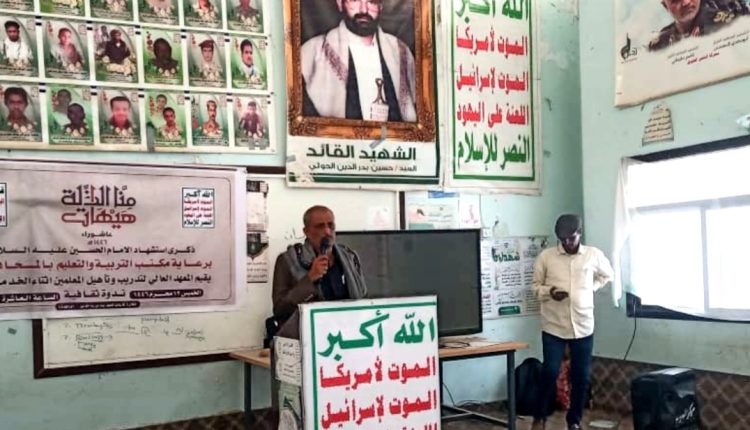 نظم المعهد العالي لتدريب وتأهيل المعلمين أثناء الخدمة في محافظة تعز، اليوم، فعالية ثقافية وخطابية بذكرى استشهاد الإمام الحسين – عليه السلام – تحت شعار “هيهات منا الذلة”.