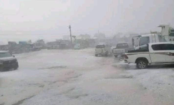وقالت مصادر محلية إن أمطارا غزيرة شهدتها المحافظة اليوم صاحبها تساقط كثيف للثلوج “البرد” والذي غطى مساحات كبيرة في أحياء وشوارع المدينة.