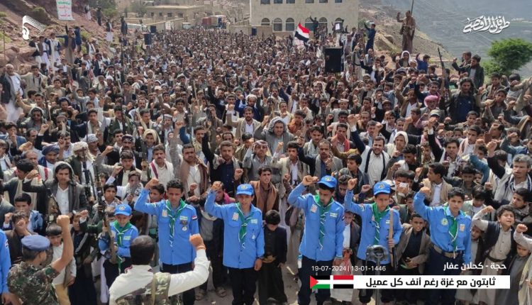 أحتشد أبناء محافظة حجة في مسيرات تضامنية مع الشعب الفلسطيني تحت شعار “مع غزة رغم أنف كل عميل”.