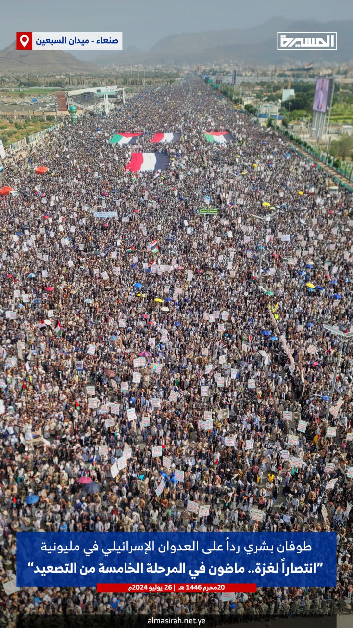 شاهد| صور جوية للطوفان البشري والحشود المليونية في ميدان السبعين بالعاصمة صنعاء في مسيرة “انتصاراً لغزة.. ماضون في المرحلة الخامسة من التصعيد”