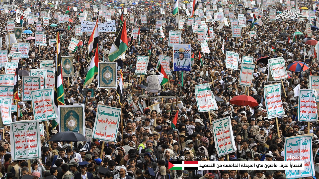 وطالبت الحشود القيادة الشجاعة والقوات المسلحة اليمنية، بالاستمرار في تنفيذ العمليات العسكرية النوعية في البحار وضرب الأهداف الحساسة للعدو الصهيوني، رداً على عدوانه واستمرار مجازره وحرب الإبادة الجماعية التي يرتكبها بحق الشعب الفلسطيني بدعم أمريكي وغربي.