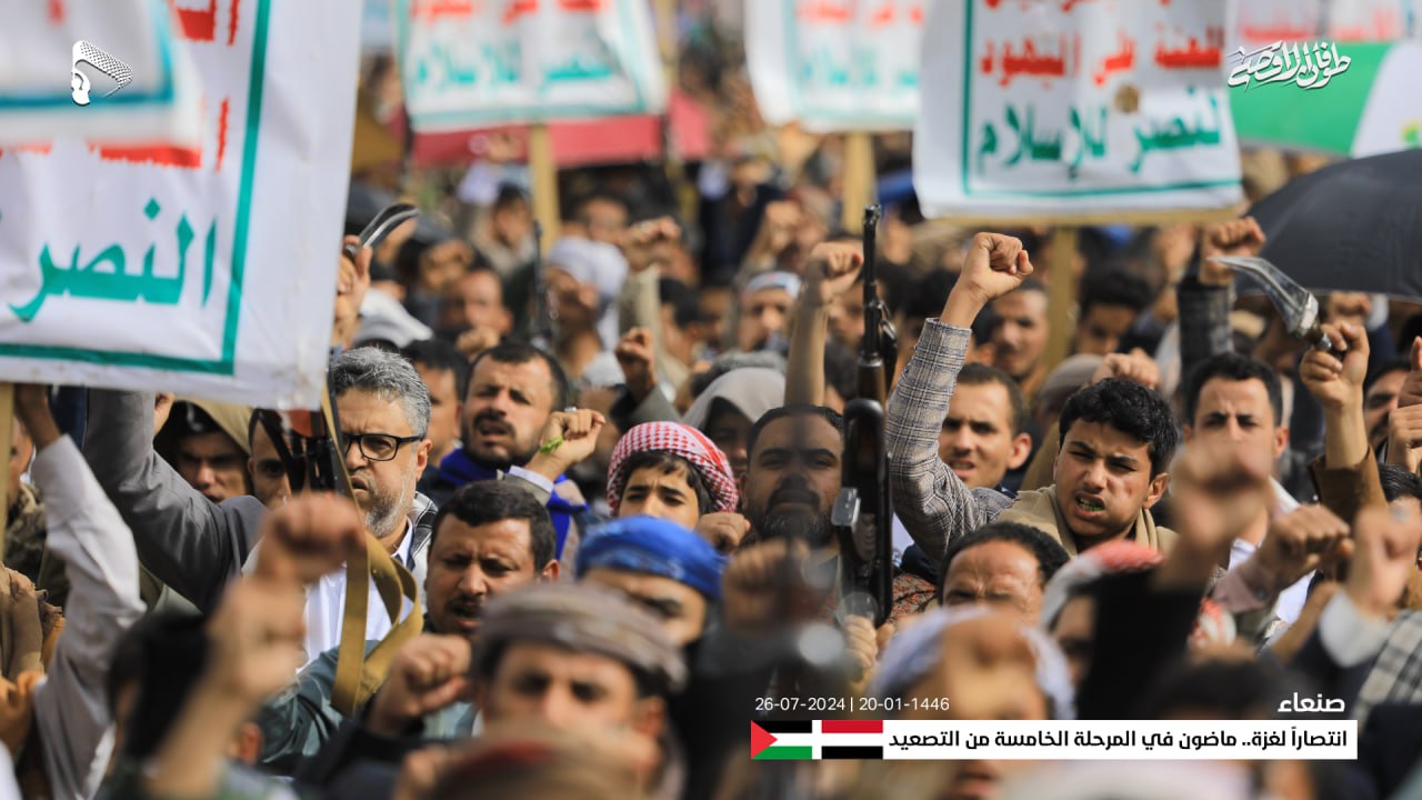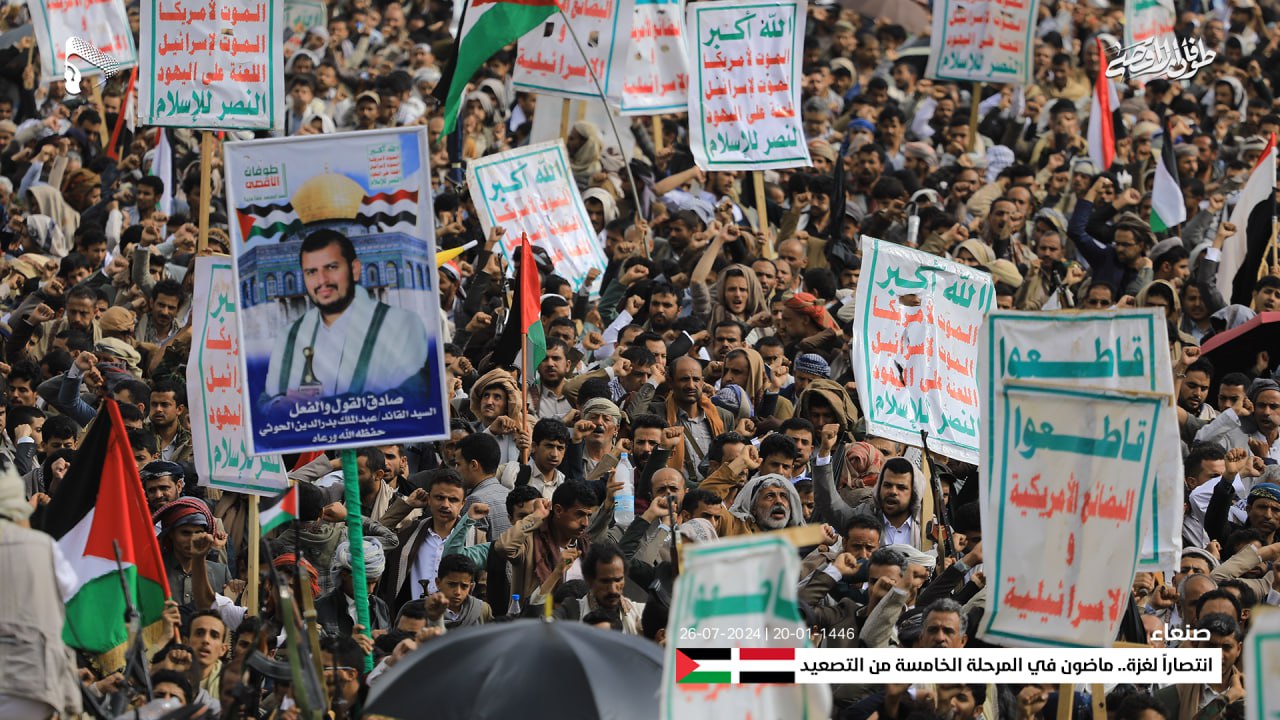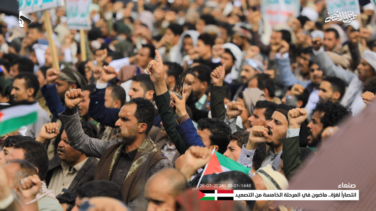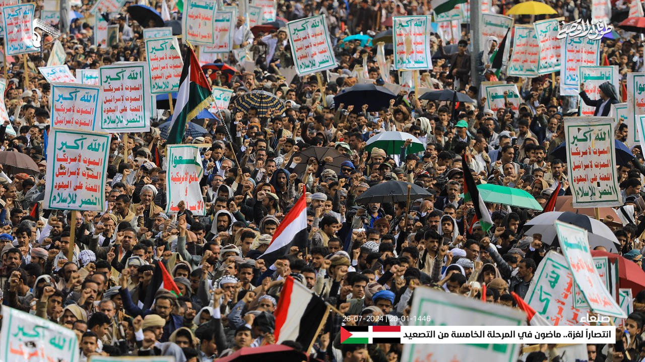 وأعلنت الحشود في المسيرة، حالة الاستنفار الشامل والجهوزية العالية للشعب اليمني واستعداده التام للمواجهة المباشرة مع العدو الإسرائيلي والأمريكي، في إطار معركة الفتح الموعود والجهاد المقدس حتى تحقيق النصر.