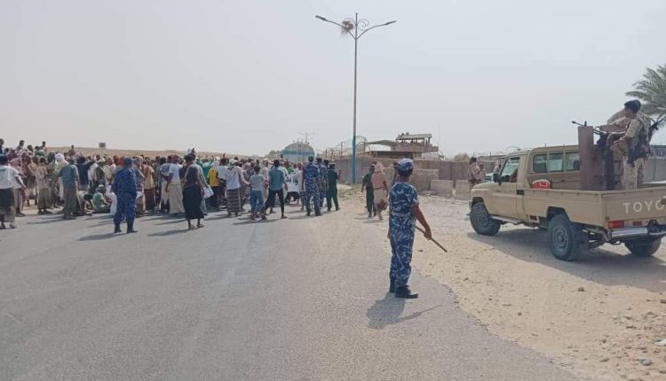 وردد المتظاهرون هتافات ورفعوا لافتات تطالب برحيل قوات الإمارات، وفتح سواحل المحافظة أمام عمليات الصيد.