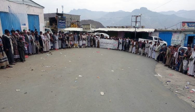 وقفة لأبناء منبه في صعدة تنديداً بجريمة اغتيال القائد هنية