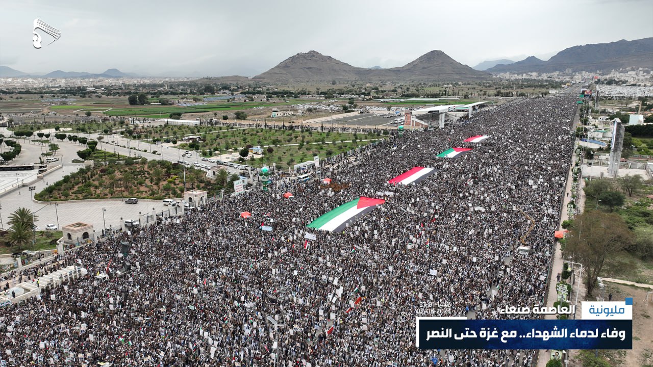 شاهد| صور جوية للطوفان البشري والحشود المليونية الغاضبة في مسيرة “وفاء لدماء الشهداء.. مع غزة حتى النصر” في ميدان السبعين بالعاصمة صنعاء