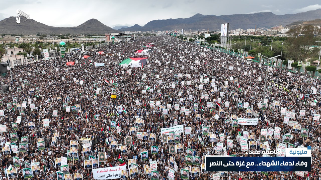 شاهد| صور جوية للطوفان البشري والحشود المليونية الغاضبة في مسيرة “وفاء لدماء الشهداء.. مع غزة حتى النصر” في ميدان السبعين بالعاصمة صنعاء 27-01-1446هـ | 02-08-2024م