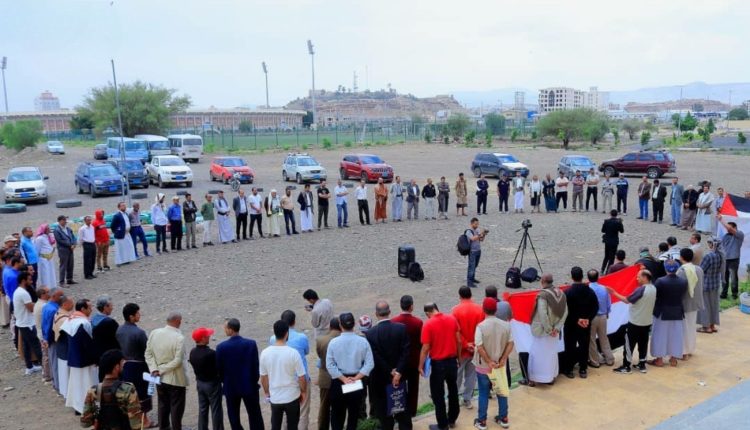 وفي الوقفة، أشاد وزير الشباب والرياضة في حكومة تصريف الأعمال، محمد حسين المؤيدي، بثبات موقف الشعب اليمني وقيادته الحكيمة في مناصرة الشعب الفلسطيني وإسناد ودعم المقاومة الفلسطينية في غزة والأراضي المحتلة بكل الخيارات والوسائل الممكنة.