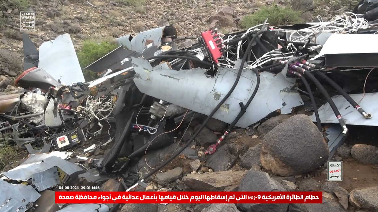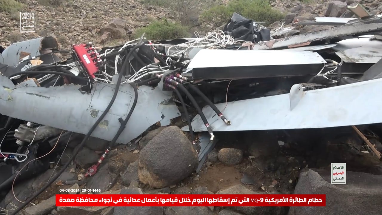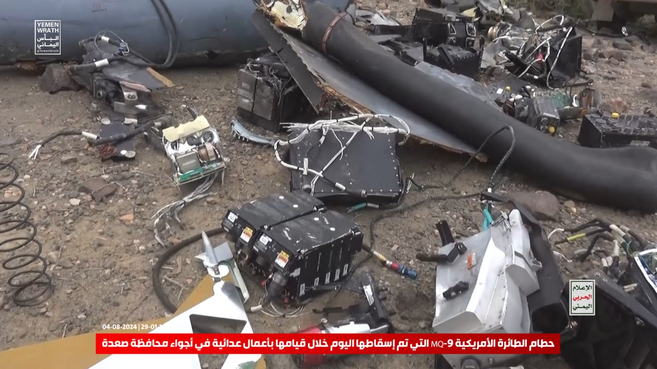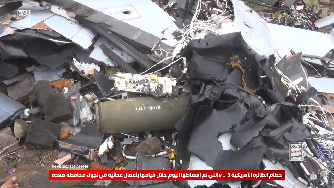 صور| حطام الطائرة الأمريكية MQ9 التي تم إسقاطها بصاروخ أرض جو محلي الصنع لحظة قيامها بأعمال عدائية في أجواء محافظة صعدة 29-01-1446هـ | 04-08-2024م