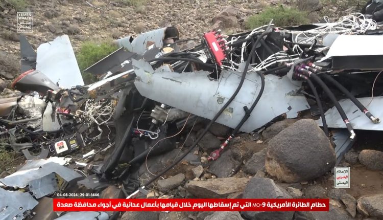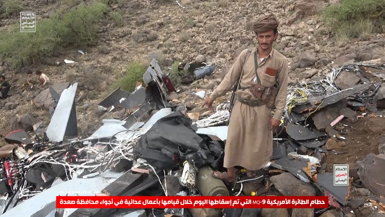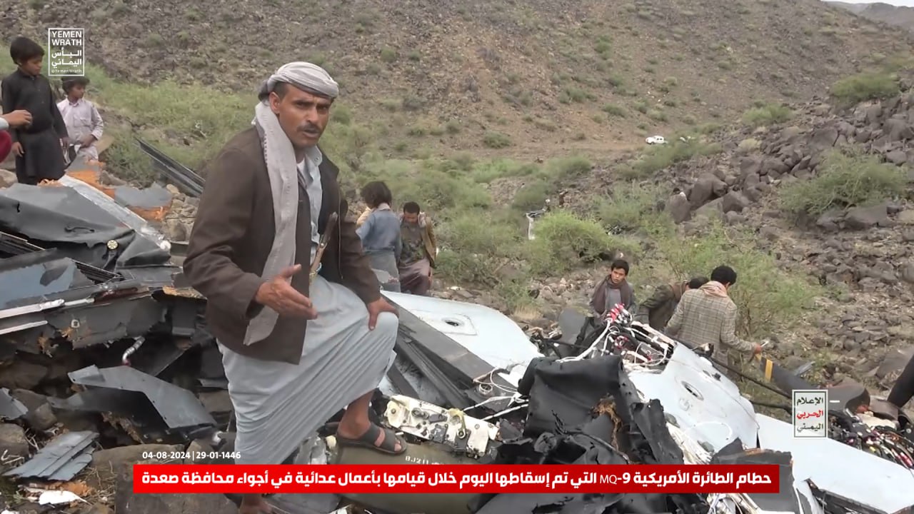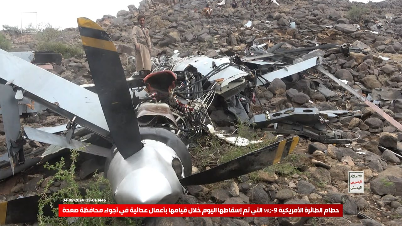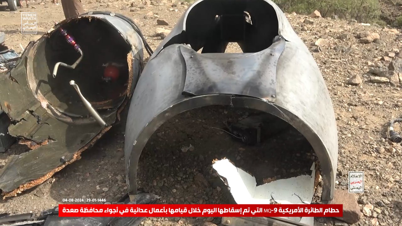 صور| حطام الطائرة الأمريكية MQ9 التي تم إسقاطها بصاروخ أرض جو محلي الصنع لحظة قيامها بأعمال عدائية في أجواء محافظة صعدة 29-01-1446هـ | 04-08-2024م
