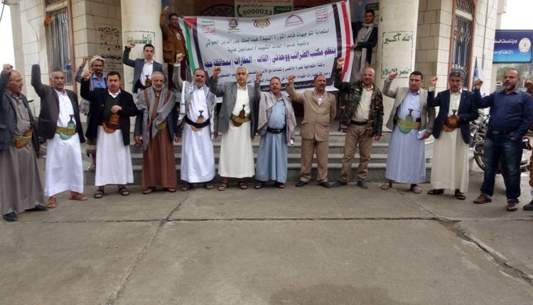 وأدان المشاركون في الوقفة التي شارك فيها نائب مدير الضرائب خالد الدهني ومدير ضريبة القات محمد الشهاري جريمتي اغتيال رئيس المكتب السياسي لحركة المقاومة الإسلامية حماس إسماعيل هنية والقيادي في حزب الله فؤاد شكر من قبل الكيان الصهيوني المجرم.