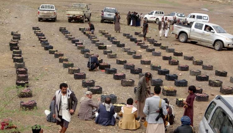 تضمنت القافلة التي تعد الرابعة من أبناء مديرية بني حشيش، أكثر من 120 سلة من العنب والخوخ.