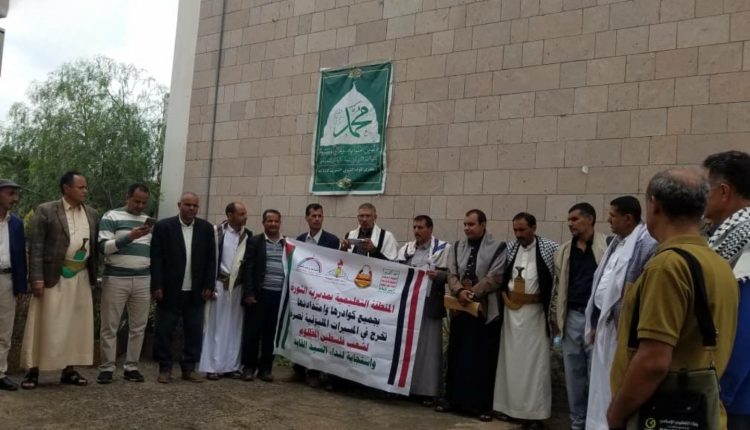 وفي الوقفات، ضمن أنشطة وبرامج نصرة الأقصى، رفع المشاركون العلَمَين اليمني والفلسطيني، والشعارات المؤكدة على استمرار مساندتهم وتضامنهم الكامل مع الشعب والمقاومة الفلسطينية ضد غطرسة وجرائم العدو الصهيوني والأمريكي.