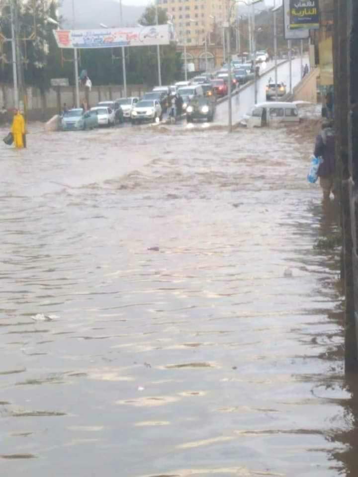 ووفق شهود عيان فقد نزلت سيول كبيرة من اتجاه جبال عطان واختلطت مع السيول داخل المدينة ما أدى لإغلاق تام لبعض الشوارع الشمالية والغربية بالعاصمة صنعاء وتعطل حركة المرور فيها.