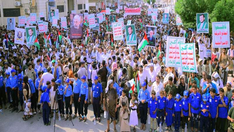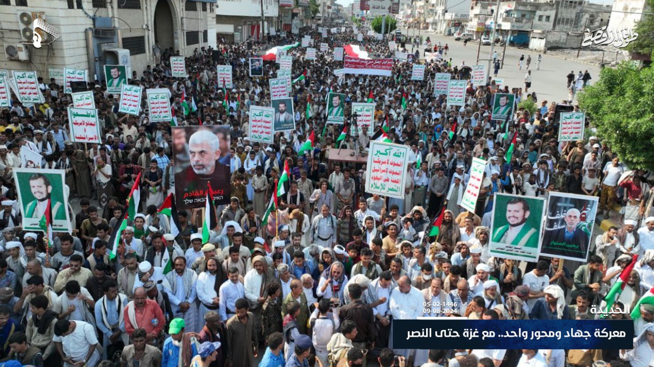 مسيرات كبرى في 30 ساحة بالحديدة تحت شعار (معركة جهاد ومحور واحد.. مع غزة حتى النصر)