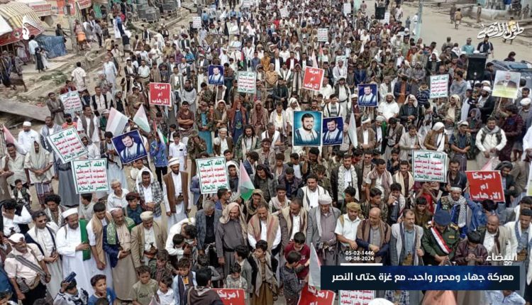 شهدت مديريات محافظة البيضاء اليوم مسيرات ووقفات جماهيرية حاشدة نصرة للقضية الفلسطينية وتنديدا بمجازر العدو الصهيوني تحت شعار “معركة جهاد.. ومحور واحد.. مع غزة حتى النصر”.