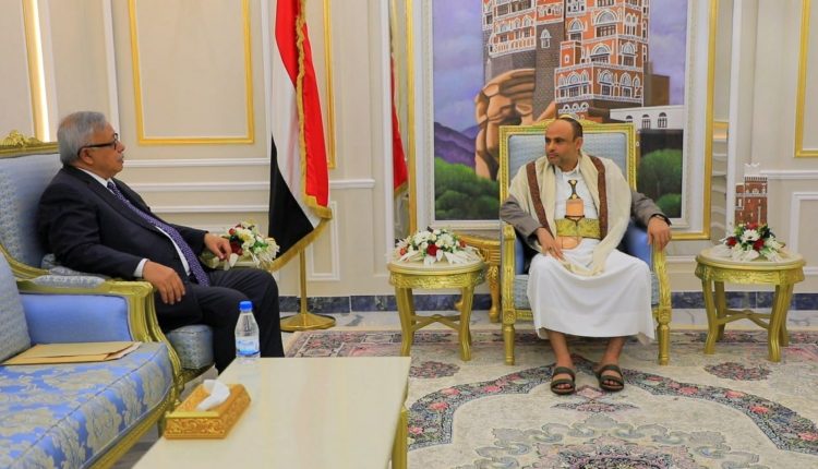 التقى فخامة المشير الركن مهدي المشاط، رئيس المجلس السياسي الأعلى، اليوم، عضو المجلس السياسي الأعلى الدكتور عبدالعزيز بن حبتور.