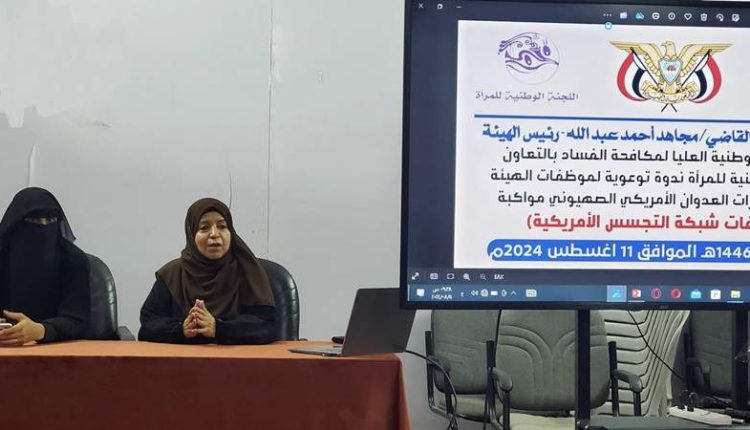 نظمت الهيئة الوطنية العليا لمكافحة الفساد بالتعاون مع اللجنة الوطنية للمرأة، اليوم الأحد، ندوة توعوية لموظفات الهيئة حول مخاطر ومؤامرات العدوان الأمريكي، الصهيوني، مواكبة لاعترافات شبكة التجسس الأمريكية.