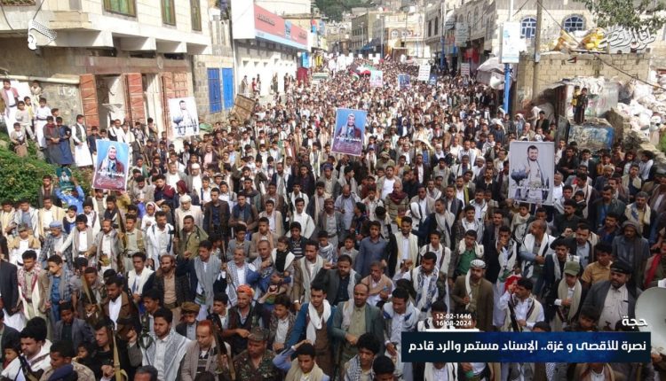 صور صور| مسيرات حاشدة في حجة تحت شعار “نصرة للأقصى وغزة .. الإسناد مستمر والرد قادم” يمانيون/ صور صور| مسيرات حاشدة في حجة تحت شعار “نصرة للأقصى وغزة .. الإسناد مستمر والرد قادم” Share