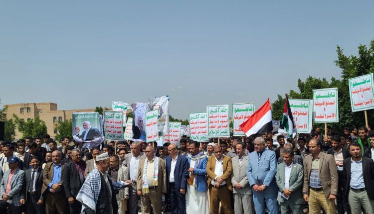 جامعة ذمار تنظم مسيرة طلابية وأكاديمية حاشدة نصرة للشعب الفلسطيني