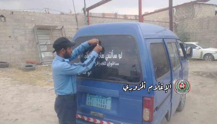 دعت شرطة مرور أمانة العاصمة صنعاء، مالكي وسائقي السيارات والباصات الأجرة، إلى سرعة إزالة الملصقات الدعائية والعبارات الخادشة للحياء العام والمنافية للأخلاق من على زجاج سياراتهم وباصاتهم طوعياً، كونها تعد مخالفة مرورية وردت عقوبتها في قانون المرور والقوانين النافذة.