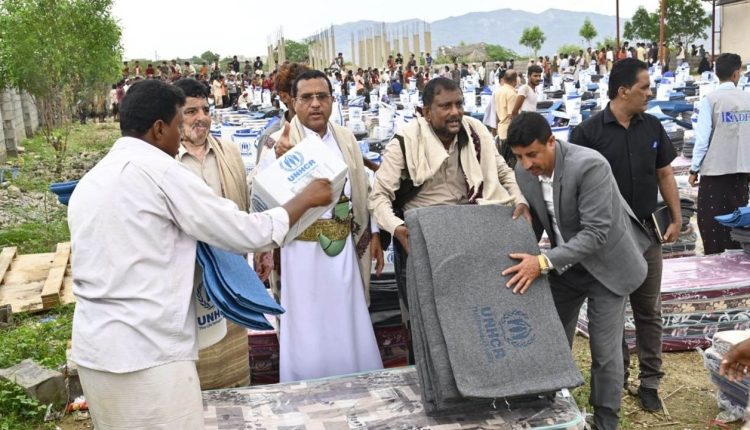 حجة .. توزيع مساعدات إيوائية للمتضررين من السيول في عبس ومستبأ