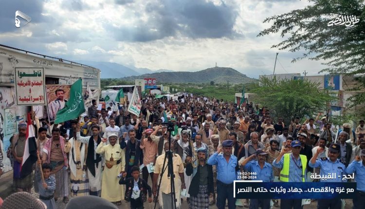 شهدت مديرية القبيطة بمحافظة لحج اليوم، مسيرة حاشدة تحت شعار “مع غزة والأقصى.. جهاد وثبات حتى النصر”، تضامناً مع الشعب والمقاومة الفلسطينية بقطاع غزة.