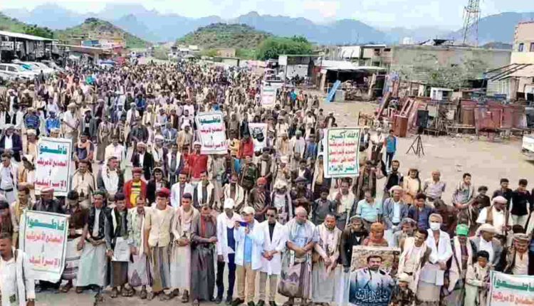 شهدت محافظة ريمة، اليوم، مسيرات جماهيرية حاشدة في 22 ساحة تحت شعار “مع غزة والأقصى .. جهاد وثبات حتى النصر”، تنديداً بالعدوان الأمريكي، البريطاني، الإسرائيلي بحق الشعب الفلسطيني.