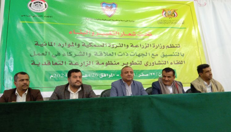نظمت وزارة الزراعة والثروة السمكية والموارد المائية، اليوم، لقاءً تشاورياً حول تعزيز وتحسين منظومة الزراعة التعاقدية.