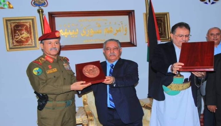 حيث تسلم وزير الدفاع اللواء الركن محمد العاطفي، درعي المجلس لوزارة الدفاع والإنتاج الحربي، ومنتسبيها، وكذا الدرع الخاص برئاسة هيئة الأركان العامة ومنتسبيها، فيما تسلم نائب رئيس جهاز الأمن والمخابرات اللواء عبد القادر الشامي الدرع والقرار الخاص بتكريم قيادة ومنتسبي جهاز الأمن والمخابرات.
