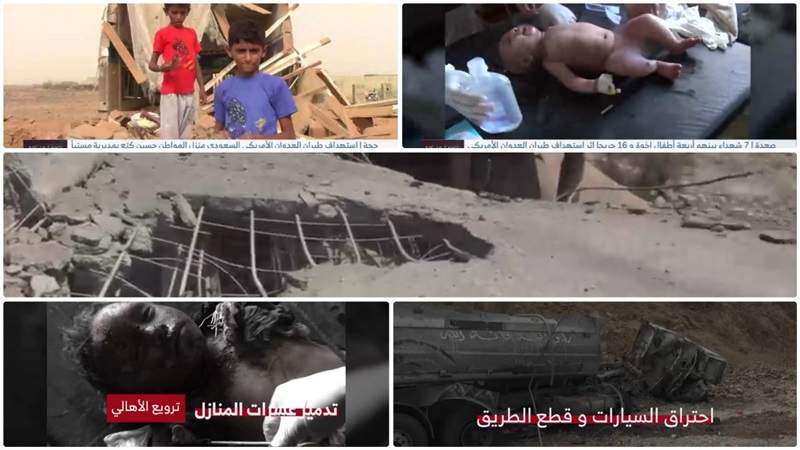 الأشلاء والدماء بين الدمار والخراب وفوق ما بقي من الأثاث وعلى ملابس المنقذين، تعكس وحشية الجريمة والمجرم، والإيغال السعوديّ الأمريكي في سفك الدم اليمني.. هنا أطفال ممزقون ومقطعون وجوارهم أخوات لهم يبكين ويصرخن لفراقهم، وأهل تقطر قلوبهم وعيونهم دماً وحزناً وكمداً، وكلهم غيظ وإباء وبأس، عباراتهم مليئة بالثقة العالية بالله ونصره، وتشديديهم على أهميّة التحَرّك صوب الجبهات.