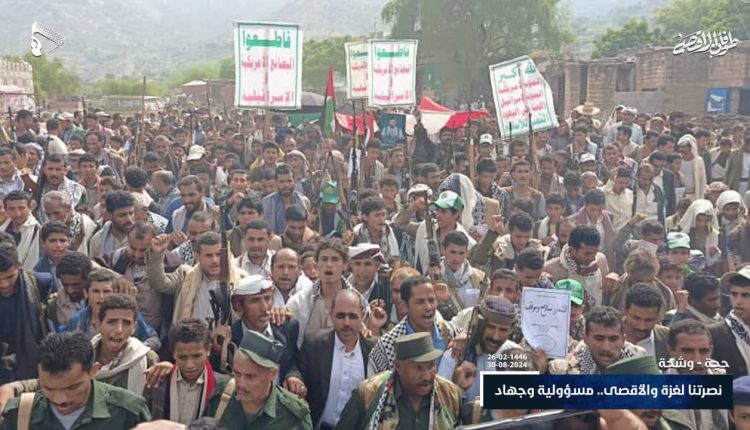 احتشد أبناء محافظة حجة في مسيرات “نصرتنا لغزة والأقصى .. مسؤولية وجهاد” إسناداً للشعب الفلسطيني وانتصاراً للأقصى ودعماً لقطاع غزة.