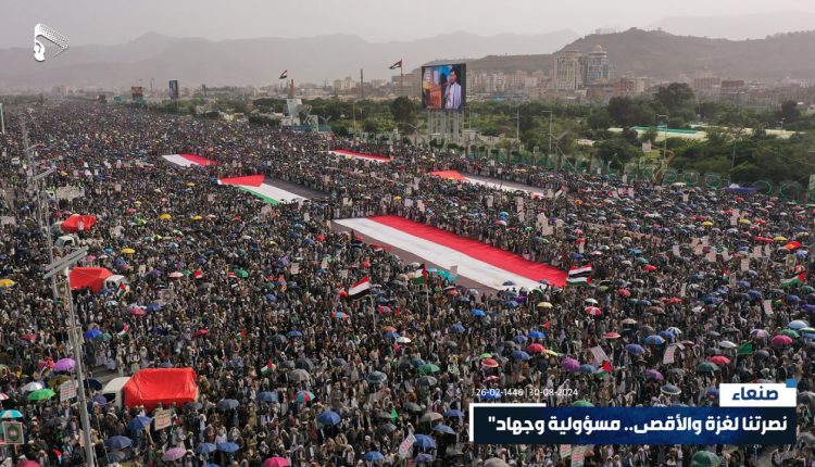 بالصور والتفاصيل.. جحافل مليونية وطوفان بشري يملأ ميدان السبعين بالعاصمة صنعاء نصرةً لغزة وتأكيداً على استمرار التضامن مع الشعب الفلسطيني