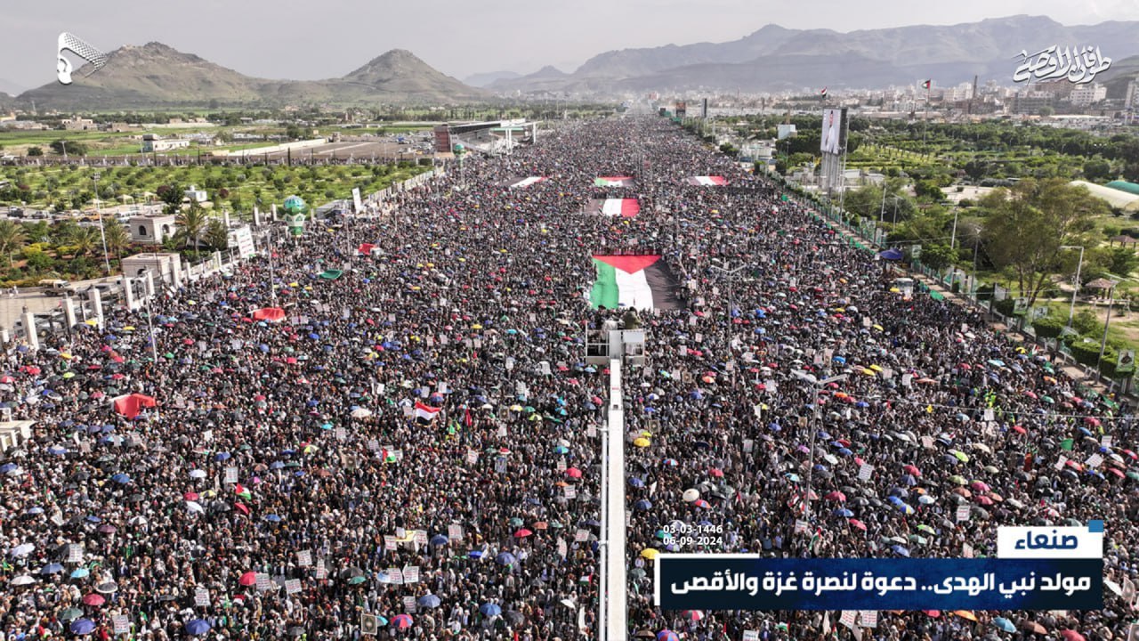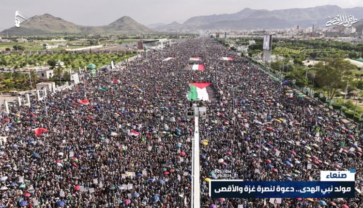 شاهد| صور جوية للطوفان البشري والحشود المليونية في ميدان السبعين بالعاصمة صنعاء في مسيرة “مولد نبي الهدى.. دعوة لنصرة غزة والأقصى”