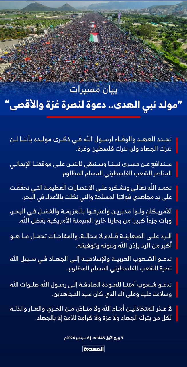 صور بيان مسيرات “مولد نبي الهدى.. دعوة لنصرة غزة والأقصى” في ميدان السبعين بالعاصمة صنعاء (إنفوجرافيك) يمانيون/ صور بيان مسيرات “مولد نبي الهدى.. دعوة لنصرة غزة والأقصى” (إنفوجرافيك) Share