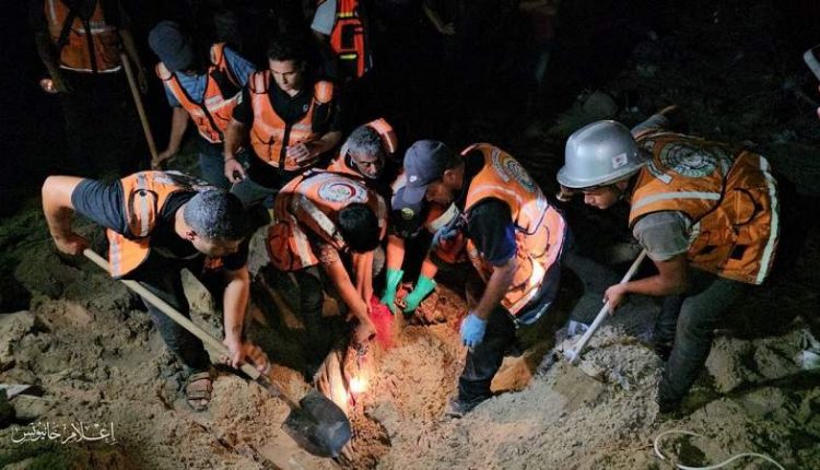 وأضاف أن عدد من الشهداء دفن في الأرض وطواقمنا تواجه صعوبة كبيرة بانتشال الشهداء وسط انعدام الإمكانيات وعدم وجود مصدر ضوء، موضحاً “تقديراتنا بأننا أمام واحدة من أبشع المجازر في هذه الحرب المسعورة”.