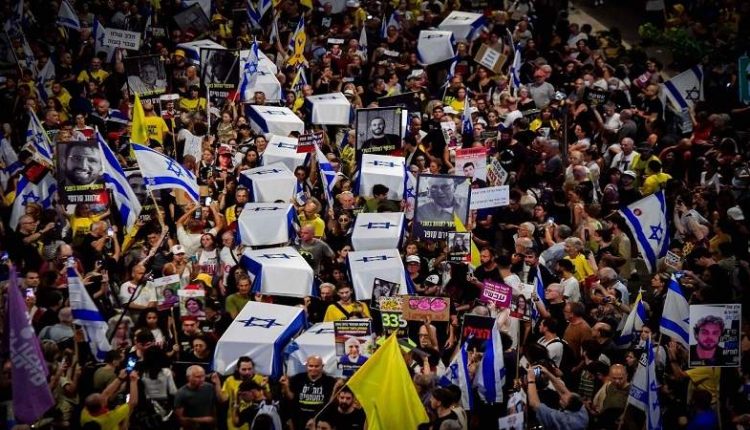 ويواصل آلاف الصهاينة التظاهر في (تل أبيب) ومناطق أخرى في المدن الفلسطينية المحتلة، للمطالبة بإبرام صفقة تبادل مع حركة المقاومة الإسلامية (حماس)، وسط اتهام رئيس الوزراء الصهيوني بنيامين نتنياهو بعرقلة التوصل لاتفاق.