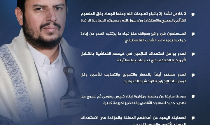 السيد القائد في كلمة له مواكبةَ لفعاليات المولد النبوي الشريف وآخر تطورات العدوان على غزة (إنفوجرافيك)